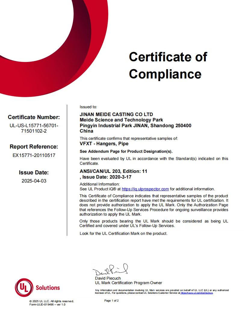 Meide Group have obtained UL certification of 3033A and 3034A clamps