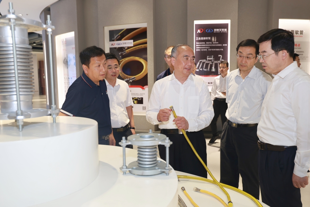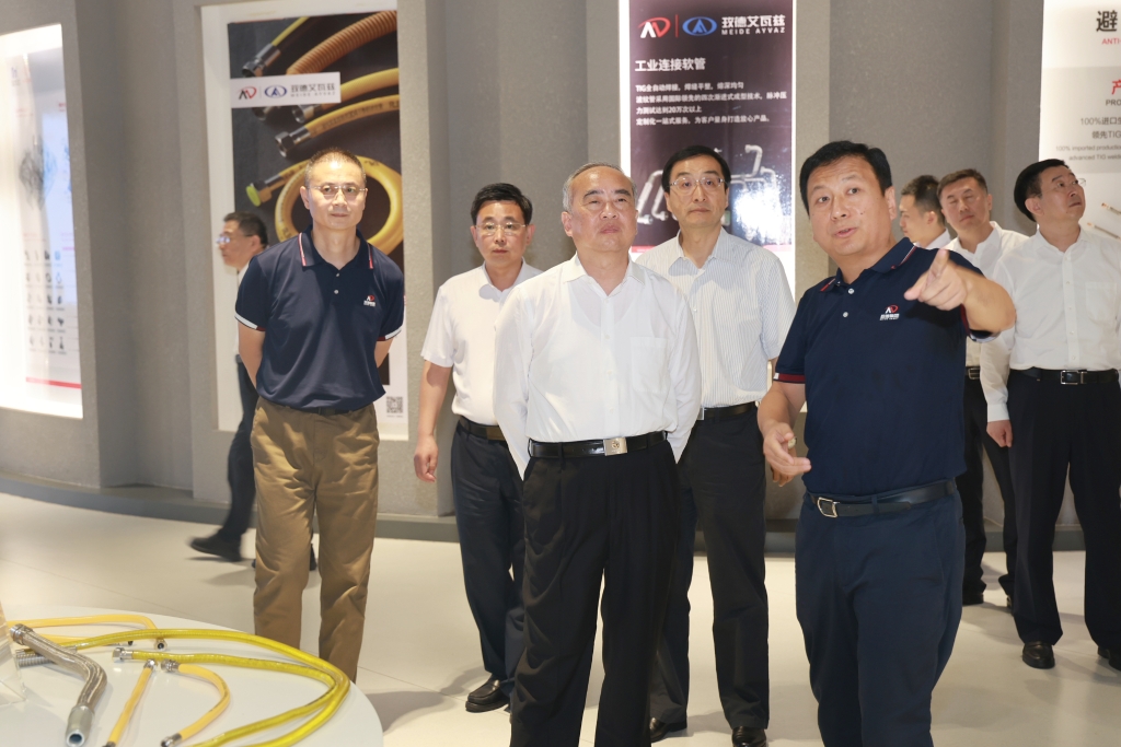 林武書記聽取孔令磊的講解介紹時,對玫德踐行國內、國際雙循環的布局以及在省內市場發展給與關注及指導,對玫德集團的不銹鋼燃氣軟管、燃氣寬邊管件、不銹鋼、碳鋼卡壓管件、TPEP螺旋鋼管、大口徑溝槽等創新產品的研發給予高度肯定,并了解了在省內市場的應用情況。林武書記指出,要堅持綠色低碳發展,以更大力度推動制造業高端化、智能化、綠色化發展。要繼續加大科技研發投入,不斷提升科技創新能力,持續增強企業核心競爭力。