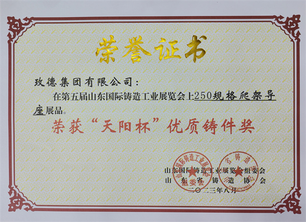 1.玫德集團有限公司展品“250規格爬架導座”榮獲“優質鑄件獎”。