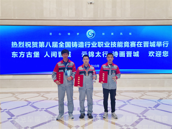 玫德集團8名選手由玫德集團科技園廠長劉克霄帶領參加了鑄造造型、熔煉澆注、鑄造模型3個項目。通過激烈角逐最終徐夫前、閆明明、劉傳輝3人獲獎!