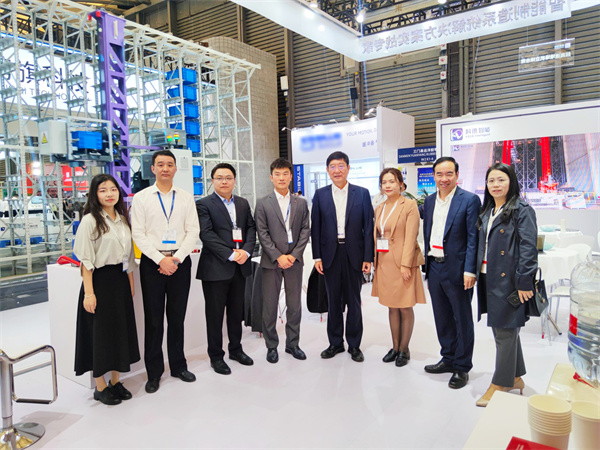亞洲物流展開展首日,中國物流與采購聯(lián)合會副會長、國際采購與供應管理聯(lián)盟全球副主席兼亞太區(qū)主席蔡進先生,及其他協(xié)會高層領導到訪科德智能展位,科德智能立庫事業(yè)部總經(jīng)理耿玉慶與協(xié)會領導進行交流、合影留念。