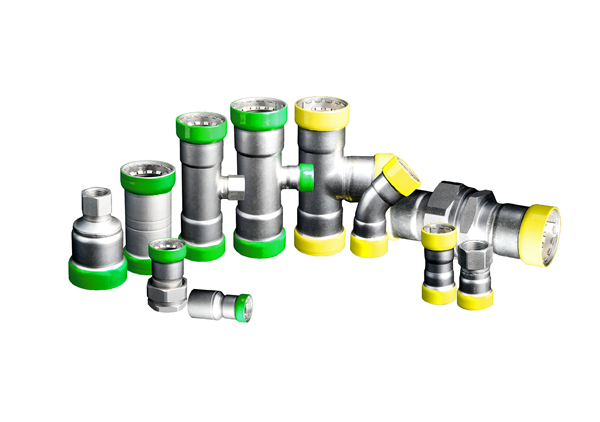 薄壁碳鋼單卡壓管件及管材,相較于普通螺紋連接,碳鋼單卡壓每百噸管材可減少碳排放210噸,主要應(yīng)用于燃?xì)夂拖李I(lǐng)域;
