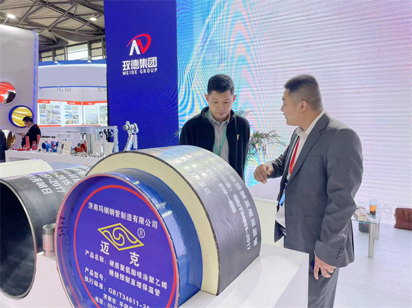 玫德集團帶來了噴涂纏繞保溫管、內外環氧防腐管、3PE防腐管、大口徑鋼管溝槽連接解決方案、不銹鋼薄壁雙卡壓管件、碳鋼卡壓產品、風光互補遠程控制蝶閥、分時分區壓力管理閥、暗桿軟密封閘閥、管道預制集成解決方案、抗震支吊架等產品,滿足不同行業的需求,實現行業融合創新、尋求突破,促進鋼管行業高質量發展。