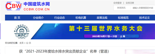 為鼓勵中國建筑金屬結構協會會員中給水排水行業企業在執行國家節能、環保和可持續發展的大政方針以及科技創新、技術進步、科學管理、產品研發、增強自主創新能力等方面取得突出成就,熱心行業事業和公益事業,中國建筑金屬結構協會管道委員會組織開展了“2021-2023 年度給水排水行業名牌、突出貢獻企業”的評選工作。經過企業申報、評審委員會秘書處審驗、協會官方網站征求意見、業內專家、知名學者和權威人士組成的評選委員會評選,最終濟南邁科管道科技有限公司成功獲得該兩項榮譽。