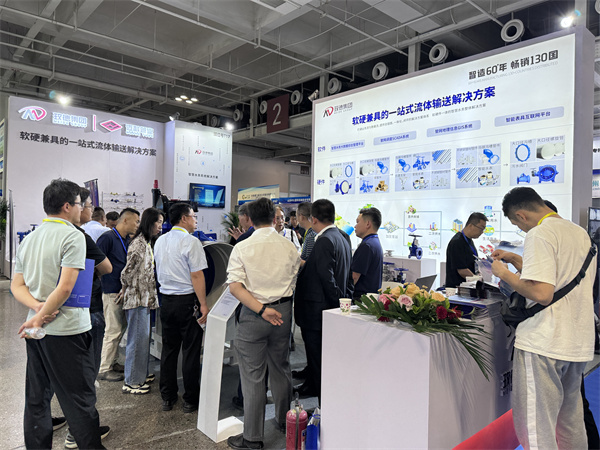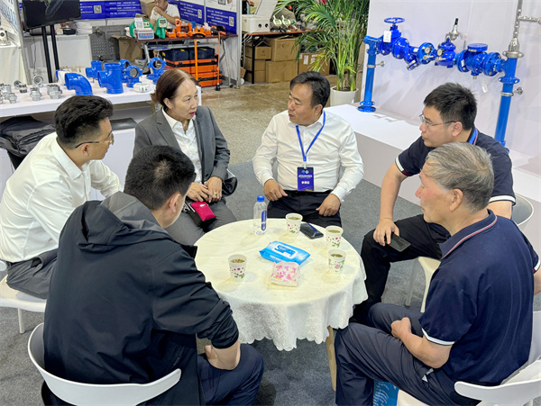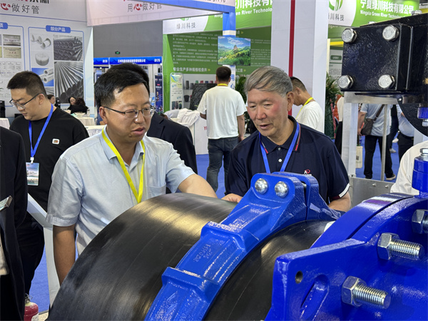 許多參展者慕名前來咨詢大口徑鋼管柔性連接技術(shù),玫德展位人流絡(luò)繹不絕。