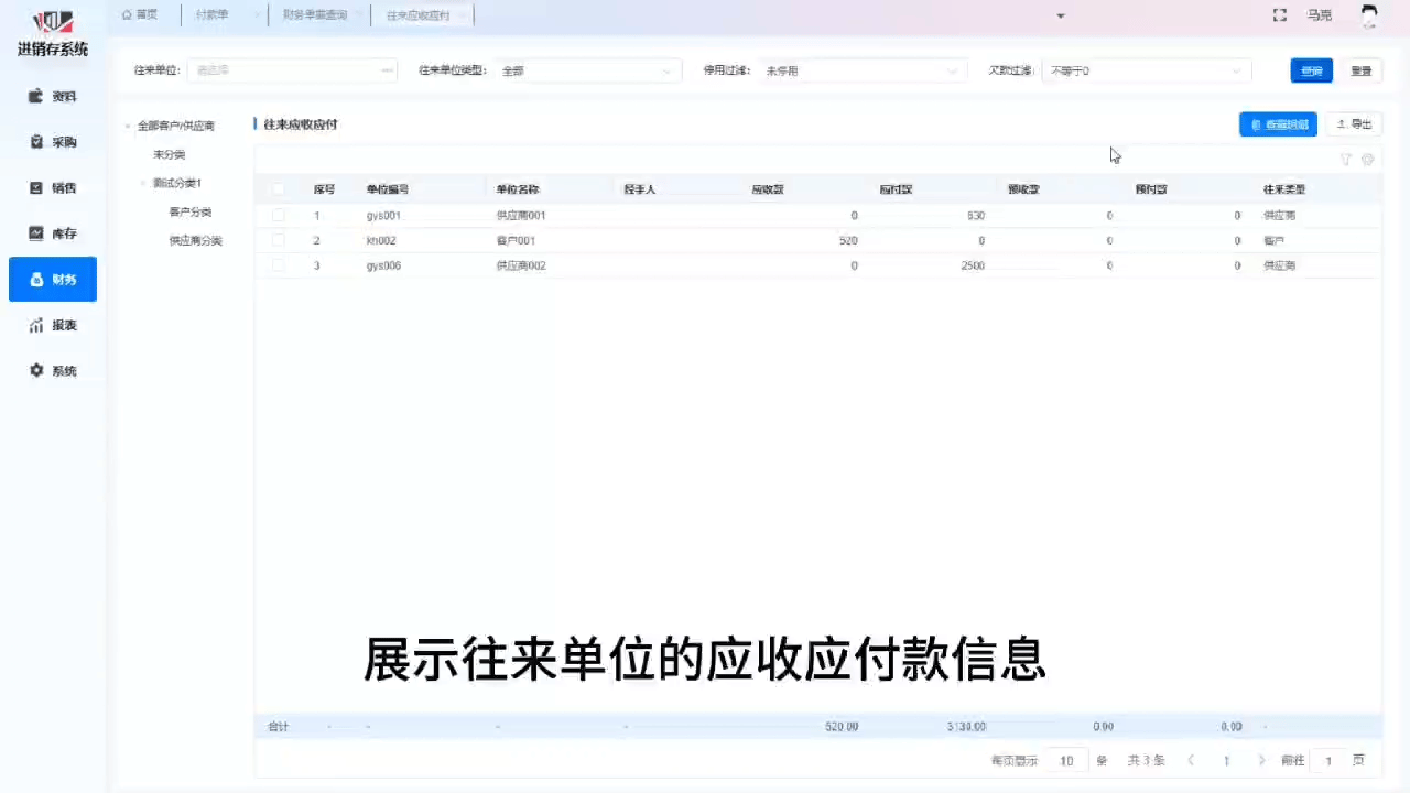 財務(wù)模塊,支持財務(wù)處理收付款,記錄費用,其他收入等財務(wù)記賬實施查看科目余額,支持往來對賬,支持月結(jié)生成利潤表,資產(chǎn)負(fù)載表等財務(wù)數(shù)據(jù),方便您隨時了解企業(yè)財務(wù)狀況。
