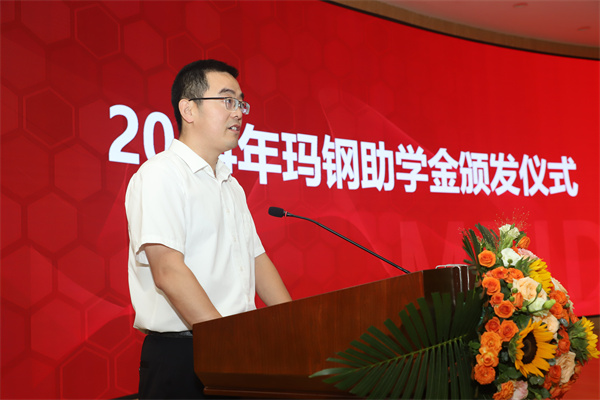 瑪鋼助學基金會副會長、玫德集團董事局主席孔令磊發表講話??字飨瘜Λ@獎學生表示祝賀,對縣委縣政府、縣教體局的指導,以及學校的支持表示感謝。他表示,能夠為縣教育事業發展和人才培養貢獻力量,集團深感榮幸。他希望,獲獎學生珍惜榮譽,再接再厲,在大學校園不忘囑托、積極進取,精進學業、自強不息。期待獲獎學生未來在玫德千億征程的藍圖上,能留下濃墨重彩的一筆!