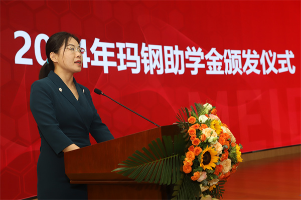 瑪鋼助學基金管理委員會會長、玫德集團董事局矩陣管理委員會副主席劉勇宣讀《關于頒發2024年度高三年級畢業生及教師瑪鋼助學金的決定》。