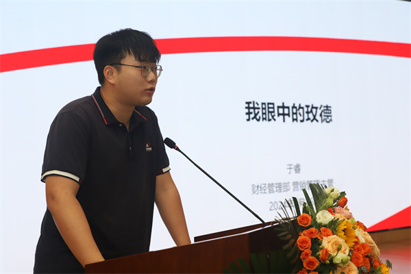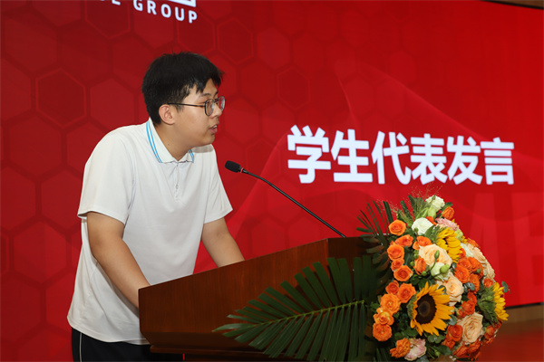 瑪鋼助學金獲得者、目前就職于玫德集團的干部代表于睿,向與會學生分享了在玫德的成長心路與寶貴經驗,就未來學業規劃與職業發展提出建議,鼓勵大家勇毅前行。