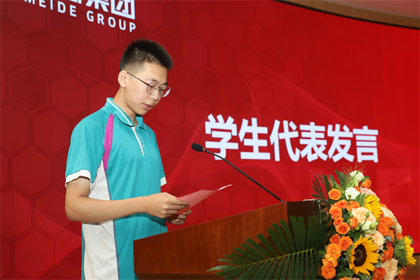 平陰一中張淼、實驗高中趙崟詩、工業學校郭芳毅和玫德集團員工子女賈明碩分別作為學生代表發言,他們衷心感謝玫德集團對平陰教育及其個人的支持,助學金不僅是經濟援助,更是精神動力,他們將勇于追夢,不負期望,以實際行動回饋社會,書寫青春華章。