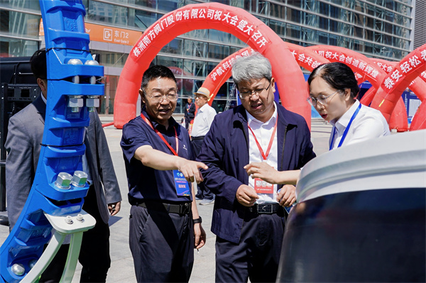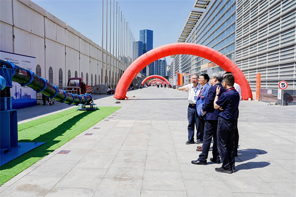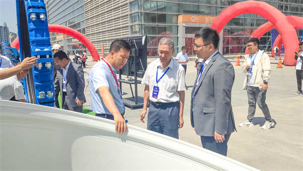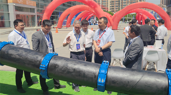 原甘肅省水利廳一級巡視員、甘肅省水利學會理事長吳天臨參觀玫德集團自主研發的大口徑鋼管柔性連接技術