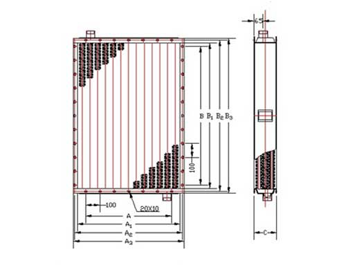舉例:SRL12×5/3表示:表面長(zhǎng)1250mm,寬545mm,由3排散熱管組成。