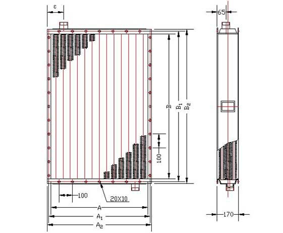 ①、②-分別為換熱器長,寬尺寸分米化整